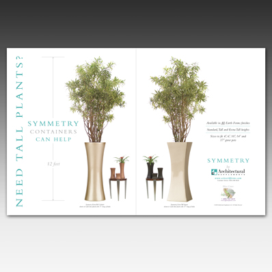 Trade Advertising The ad style maintains the company "look" and shows both the range of sizes in the product line and the ability to create tall arrangements.